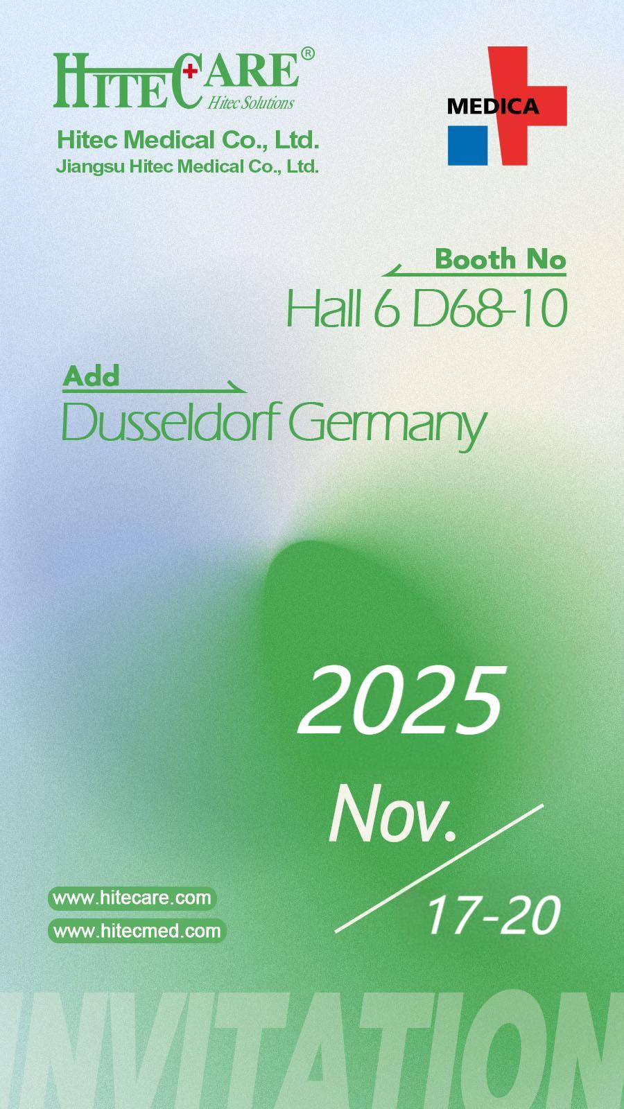 Dear friends, welcome to visit Hitec Medical in Dusseldorf, during Nov.11 to Nov. 17, 2025 Booth HALL 6 D68-10.Your reliable manufacturer of Respiratory, Anesthesia, Urological and Infusion disposable
